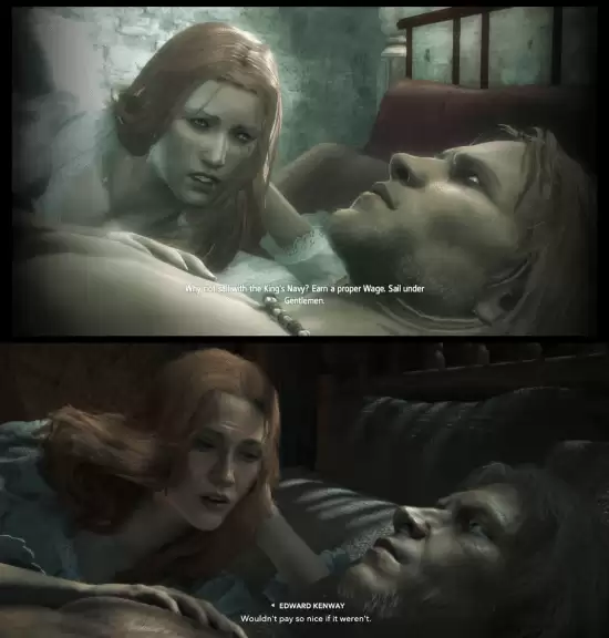 《刺客信条4:黑旗 记忆重置》的预告片段已提前流出。此前,基于新引擎打造的场景与人群建模已令人惊艳。而最新由Reddit用户ZamnBoii曝光的过场动画对比图,则更为直观。图片将重制版与原版中爱德华・肯维与妻子卡罗琳的经典卧室剧情进行并列,差异震撼。
