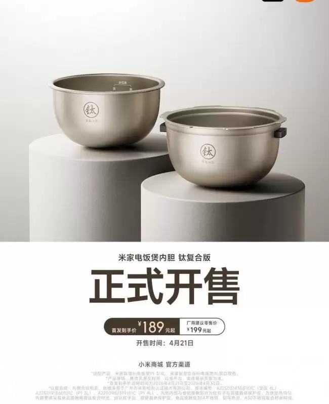 对于家中米家电饭煲内胆出现磨损,或希望升级烹饪体验的用户而言,现在迎来一个实用好消息:自即日起,米家电饭煲的内胆组件已在小米官方商城开放单独购买通道。本次上架的产品涵盖不锈钢与钛复合两种主流材质版本,为用户提供了丰富的替换选择,起始售价为169元。