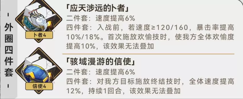 具体怎么选?这得看你的队伍更需要什么。卜者套直接增伤,简单粗暴;信使套提供速度加成,让整个队伍的节奏更快。话说回来,两者都是顶级辅助的毕业之选。