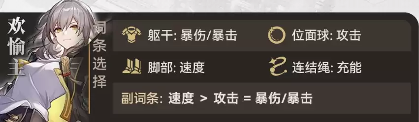 主词条的方向很清晰。躯干首选暴击,稳定提升伤害期望;鞋子无脑速度,辅助反赌才是硬道理;位面球根据实战压力,在生命或防御间抉择;连结绳则视角色机制,选择能量回复效率或直接补充攻击力。