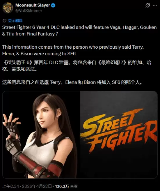 近期,格斗游戏圈被一则重磅爆料点燃。据知名外媒The Gamer披露,一位名为RnK_Clan的Reddit用户爆料称,多位高人气角色——包括《最终幻想》系列的蒂法、《街头霸王》的维加(Vega)、哈格以及隆的师父刚拳——有望在未来加入《街头霸王6》的参战阵容。