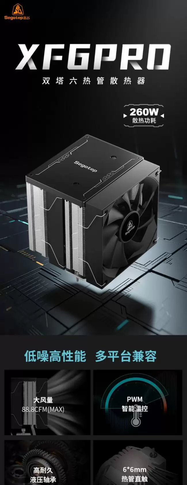 近日,国内知名机电品牌鑫谷在京东商城正式上架了一款高性能双塔风冷散热器——XF6PR0无光版。该散热器核心搭载了六根6mm高效热管,官方标称解热功耗高达260W,足以应对主流高性能处理器。产品首发定价极具吸引力,仅为169元,为追求性价比的DIY玩家提供了新的高性价比选择。