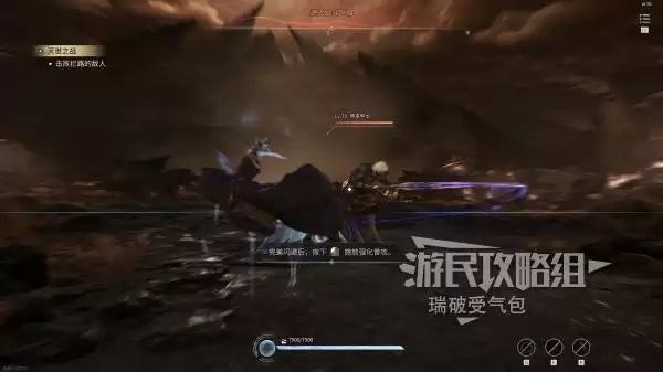 这部分教学重点在于闪避机制与处决技:【短按空格或Shift键】可以快速向指定方向闪避。如果时机把握精准,达成“完美闪避”,随后按下鼠标左键便能施放一次强力的强化普攻进行反击。