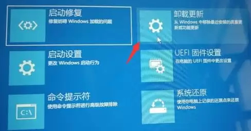 4. 最后,找到并选择“卸载更新”。这个功能允许你移除最近安装的质量更新或功能更新,从而回退到更新前的稳定状态。操作完成后重启电脑,系统应该就能正常进入了。
