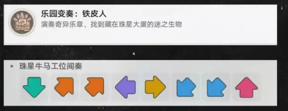 需要输入的乐谱箭头顺序为:绿色箭头、橙色箭头、橙色箭头、蓝色箭头、黄色箭头、蓝色箭头、粉红色箭头。 进入地图后,首先开启面前的宝箱。随后,你会看到两个可调整的“视窗”装置。解谜方法非常简单:只需将两个视窗的位置进行对调,正确的道路便会显现。沿着道路找到出口离开,即可成功获得“乐园变奏:铁皮人”成就。
