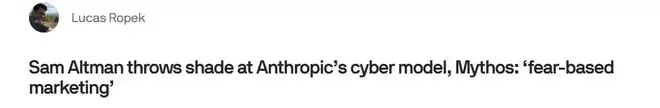 口水战升级!奥尔特曼嘲讽Anthropic新模型Mythos:夸大威胁只为卖高价