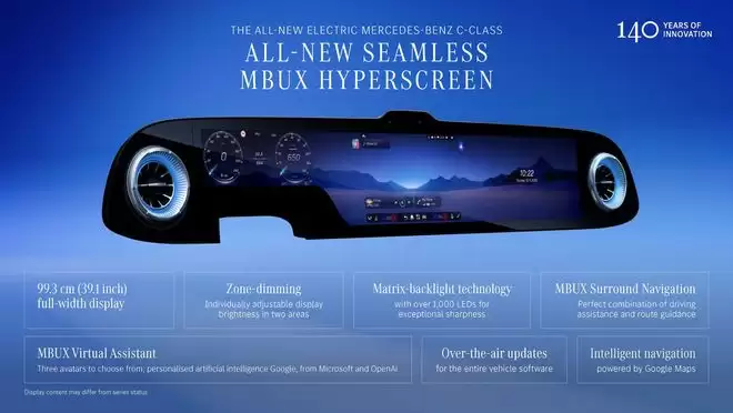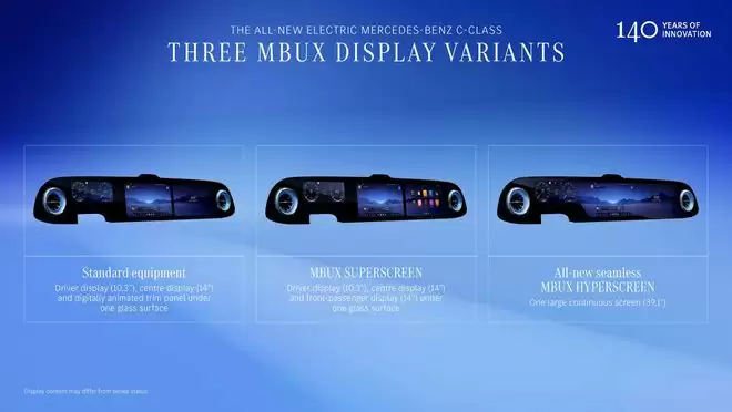 不同于CLA,最低配奔驰纯电C级中控台也有“三块大屏”