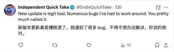 版本上线仅两天,开发者社区便涌现出大量密集的负面反馈。