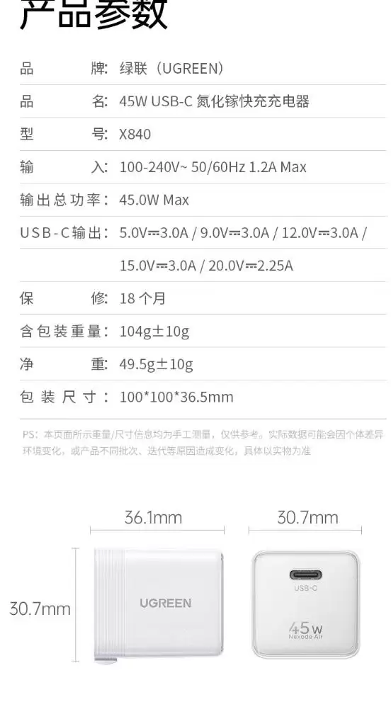 绿联推出新款 45W 氮化镓单 USB-C 接口充电头:支持 PD 3.2 AVS 79 元