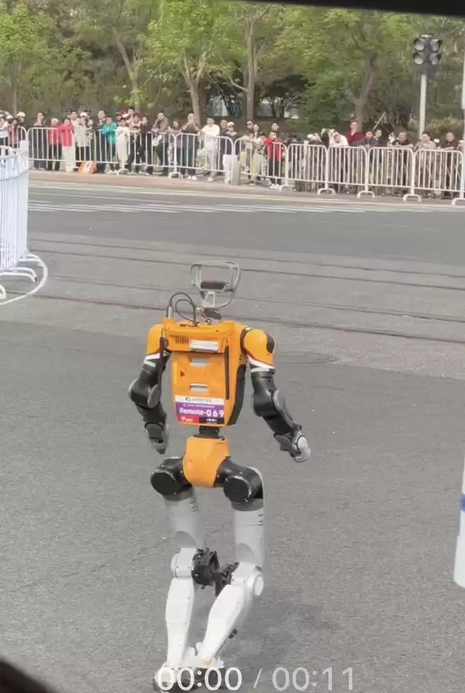 首次参赛的西湖机器人团队则经历了另一种挑战。其团队成员介绍,他们的机器人在跑步过程中并未摔倒,但在中途因电机温度异常,不得不启用备用机登场。最终,由于整体配速策略较为保守,机器人在11.4公里处被赛会的关门车追上,遗憾止步。