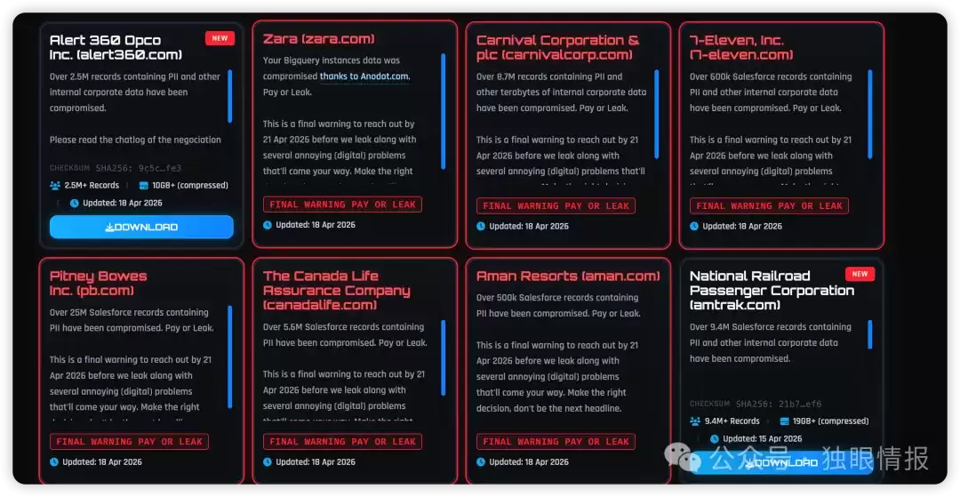 再者,其战术、技术与程序与当前剧本完全不符。真正的ShinyHunters/SLSH在2026年的行动剧本,是依托Telegram、自建DLS站点、骚扰高管家属并向记者放风(Krebs、Unit 221B均有详细记录),而绝非跑到BreachForums上挂帖公开叫卖源代码。更重要的是,真正的ShinyHunters泄露站上,根本没有Vercel的数据。