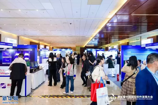 观众在第五届中国国际软件发展大会设立的展区参观。新华网发