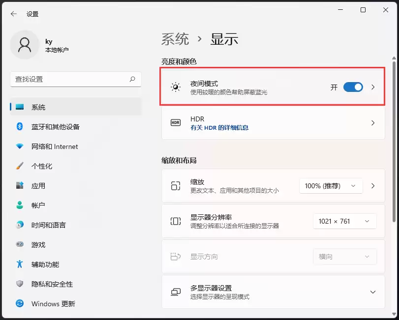 Win11夜间模式打开方法