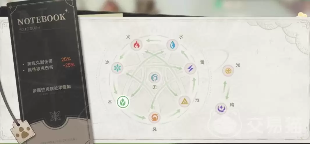 游戏内设有风、火、水、光、木、暗六种元素,构成环形克制关系。克制方造成伤害提升25%,被克方承受伤害降低25%,影响显著。主角作为唯一的“无”属性角色,其技能能为全队提供普适性增伤,性价比极高,是零氪与微氪玩家的必养角色。