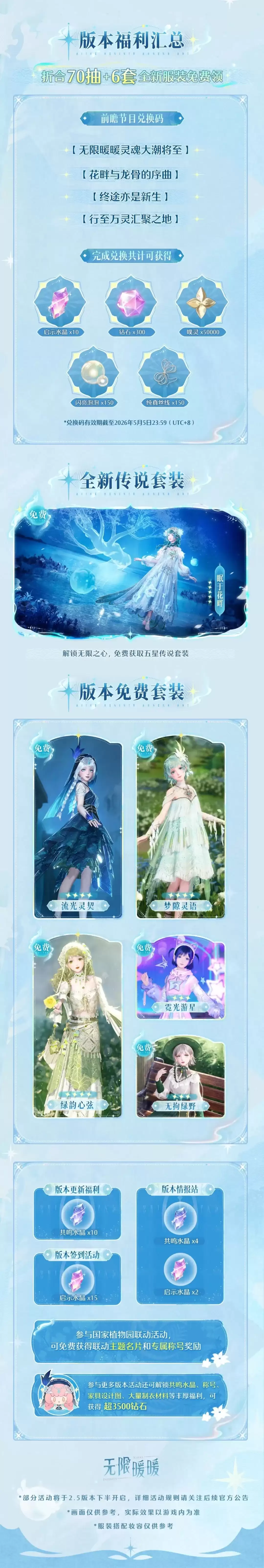 最后,有一个关键时间点需要特别提醒:本次直播公布的兑换码,将于2026年5月5日23:59(UTC+8)失效。请各位搭配师务必尽快前往游戏内兑换,千万不要错过这些限时好礼。