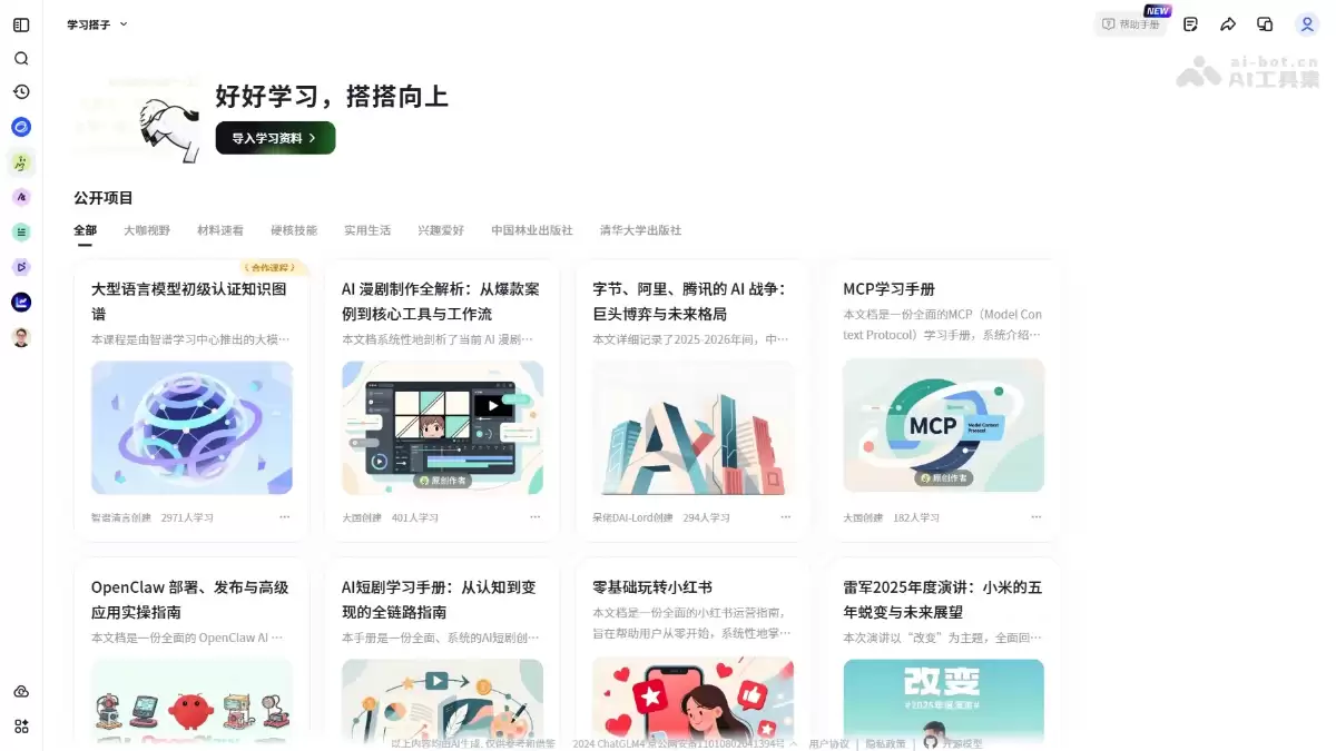 说起学习,效率和质量总是绕不开的话题。如今,智谱清言推出的“AI学习搭子”,就是冲着解决这两大痛点来的。简单来说,它是一款智能学习辅助工具,核心任务就是运用AI技术,把你手中那些可能晦涩难懂的学习资料,转化成清晰、易消化的知识结构,帮你在纷繁复杂的知识点里迅速理出头绪。