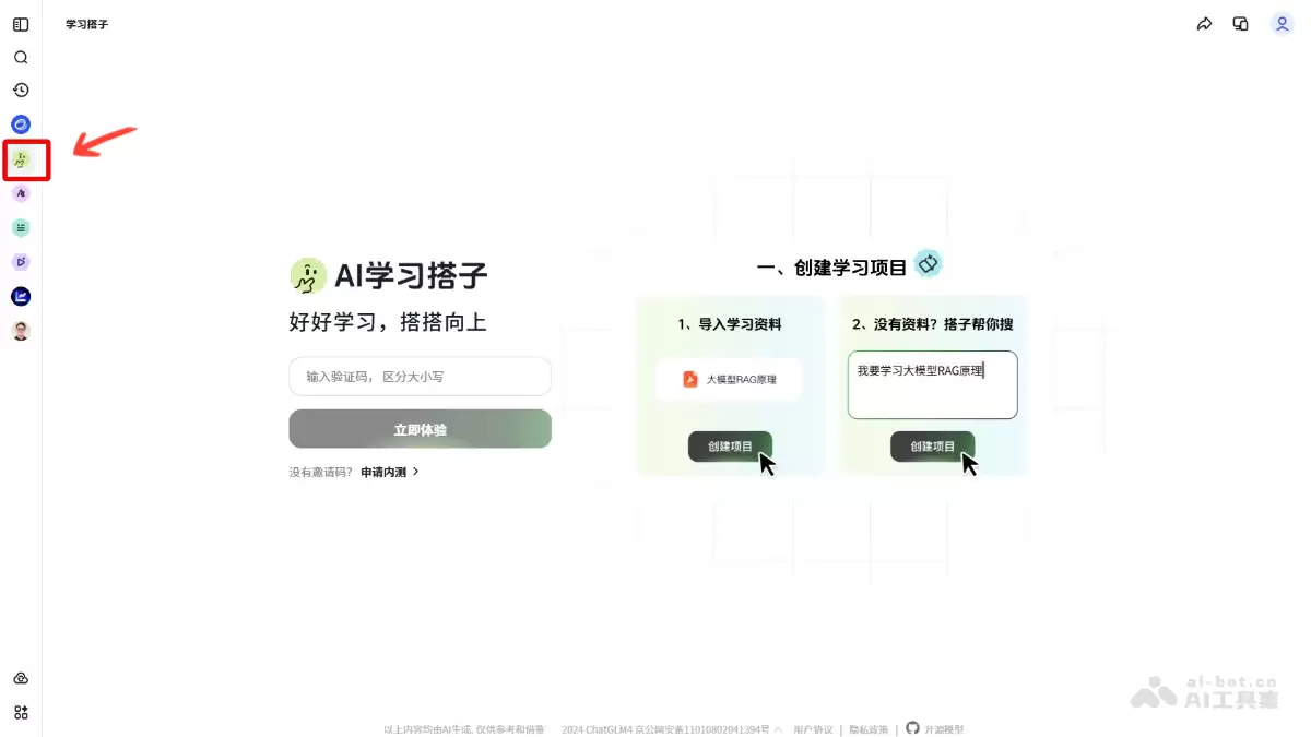 - 找到学习搭子功能:在网站侧边栏,找到“AI学习搭子”的入口并点击进入。