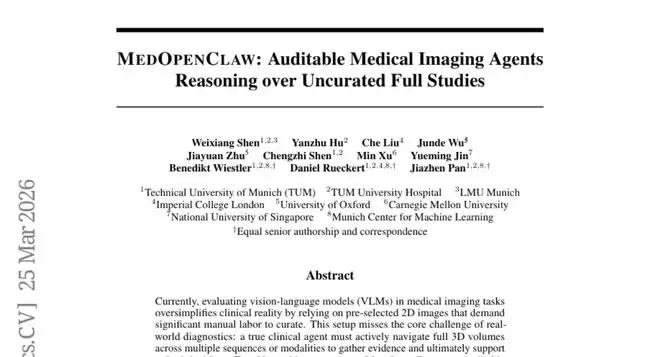一项由慕尼黑工业大学、慕尼黑大学医院、伦敦帝国学院、牛津大学及卡内基梅隆大学等顶尖机构合作完成的研究,彻底改变了这一局面。这项发表于2026年3月25日预印本平台(arXiv:2603.24649v1)的突破性工作,首次让AI系统能够像真正的放射科医生那样“亲临现场”。研究团队开发了一个名为MEDOPENCLAW的创新系统,相当于为AI配备了一个完整的“数字化放射科工作站”,使其能够主动浏览完整的3D影像、调整参数、使用专业工具,并且整个过程透明、可追溯。