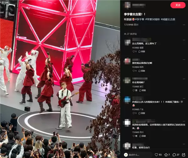 太古里办苹果50周年庆!知名女歌手献艺 库克现身 人山人海