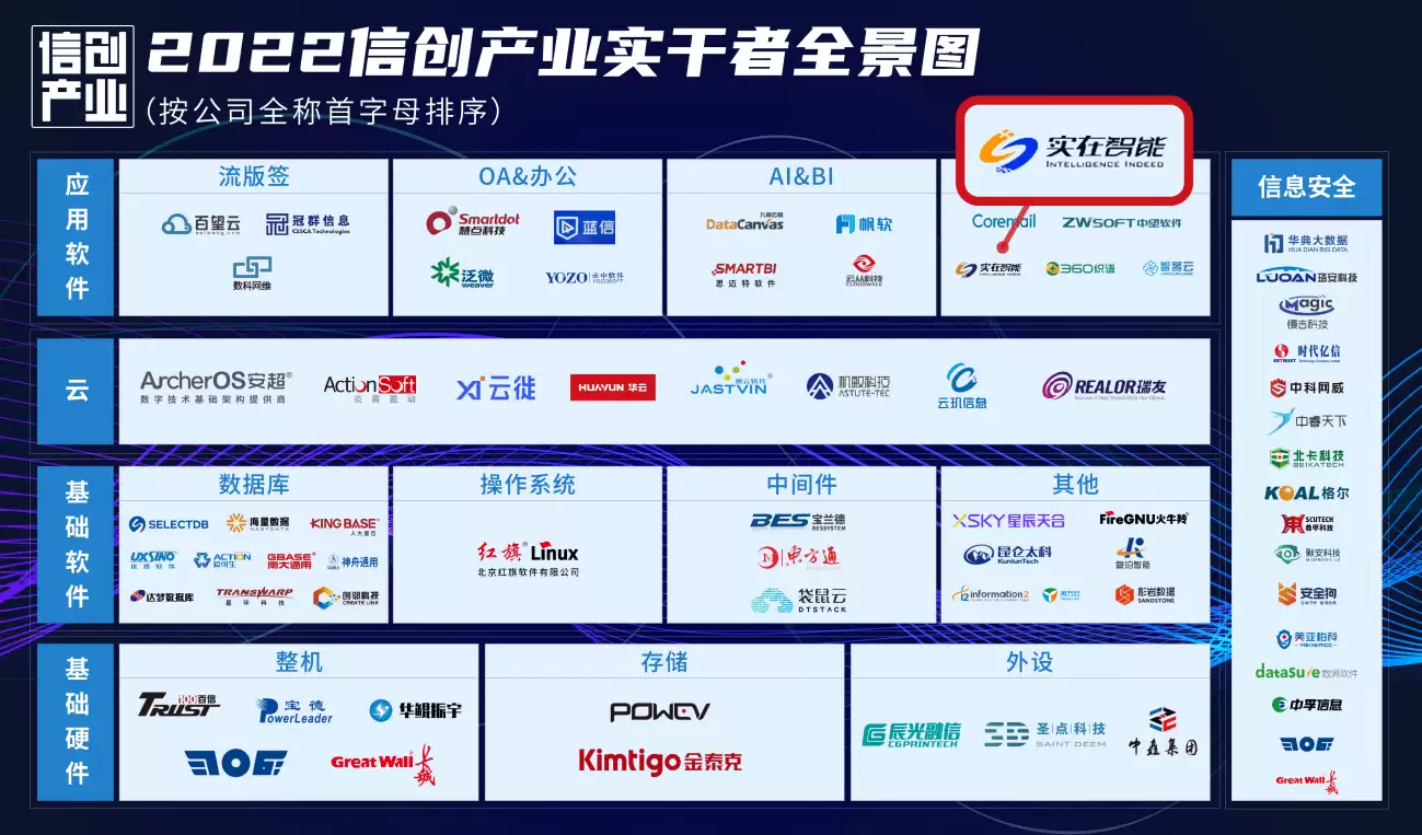 实在智能凭借其在信创领域完善的产品体系与扎实的服务能力,成功跻身榜单,获评“2022信创产业实干者年度盘点·实干企业”,并入选“2022信创产业实干者全景图”。