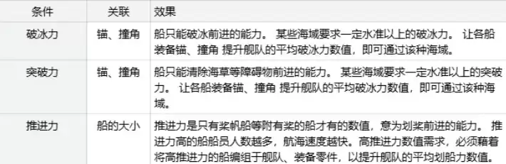除了抗浪力,还有两个数值容易被新手忽视:破冰力和突破力。前者是通往极地冰封海域的“通行证”,后者则是穿越海草密布航路的“开山刀”。提升它们的方法类似,主要通过装备锚或撞角来实现。这里有个细节需要注意:舰队的破冰力和突破力,取的是所有船只的平均值。这意味着,你不能只靠一艘“尖子生”船硬扛,整个舰队的配置水平都得均衡考虑。