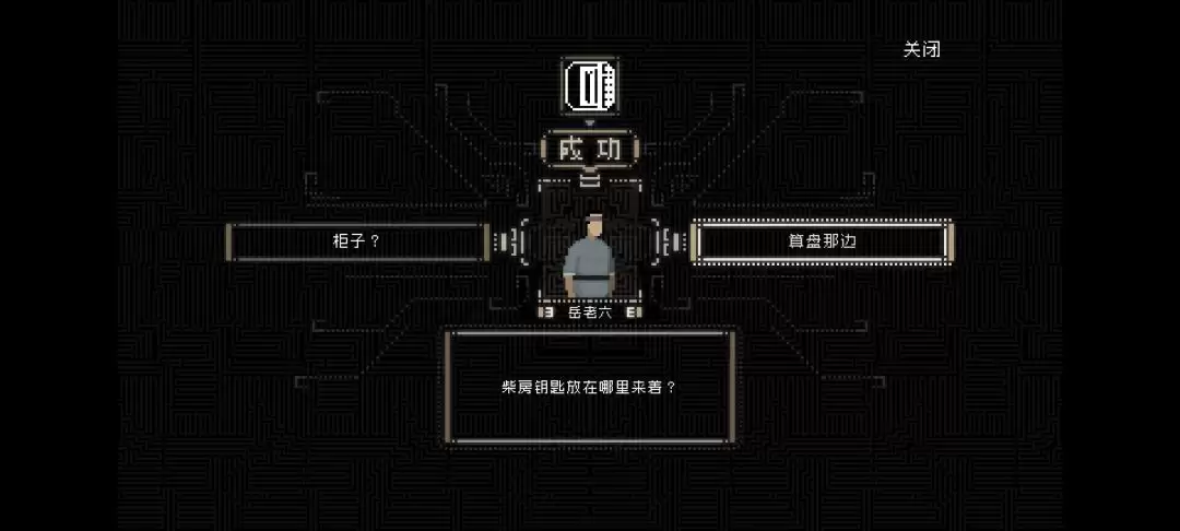 拿着这把鱼形钥匙,去打开岳老六家旁边的柴房。进去之后调查柜子,会触发一个滑块谜题。破解方法其实很直观:把所有的木块都移动到四周,把中间的四格空出来就行。解开后,拿到关键的“记忆碎片”。