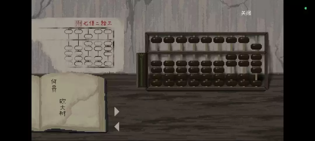 进屋之后,重点调查桌子上的那个“算盘”。仔细看算盘左下角贴着的账簿,上面记录着几笔欠款。你的任务就是把这些金额加起来,算出总和。这里提示一下,何贵欠的钱正好就是“八十五文”,跟你在药铺发现的线索对上了。算对之后,就能获得一把“鱼形钥匙”。
