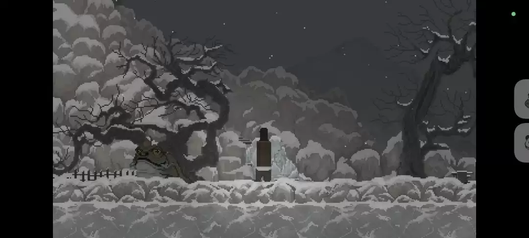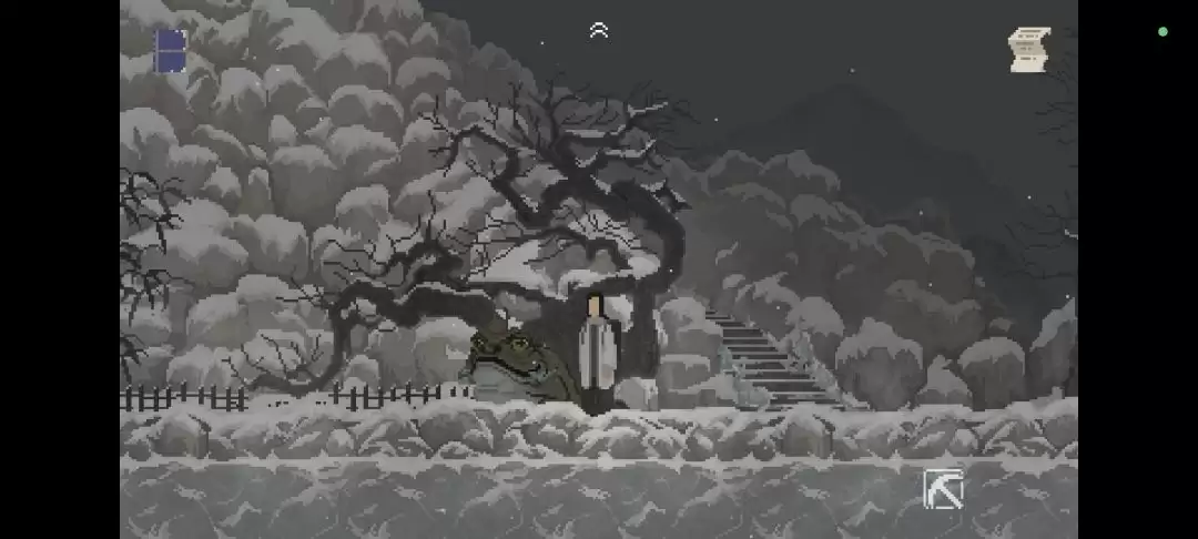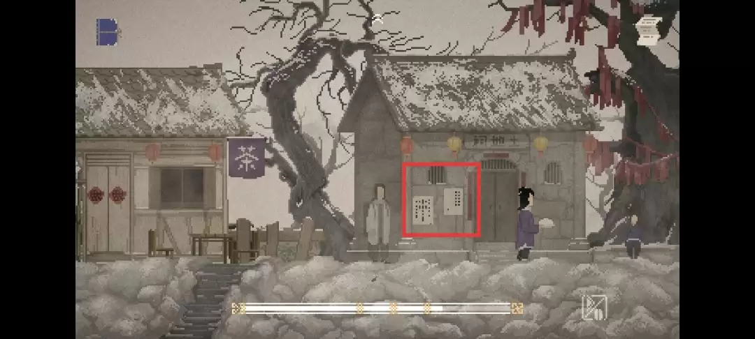 还记得刚拿到手的铁镐吗?现在派上用场了。回到那个被冰封的阶梯前,用铁镐把冰凿开。通路一开,就能前往岳老六的家了(就是茶水摊左边的那间屋子)。