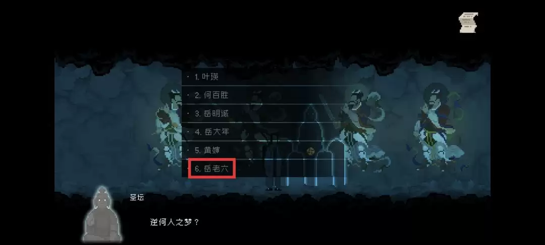 东西齐了,接下来直奔山洞里的圣坛。把刚才得到的“记忆碎片”放入圣坛,然后选择“岳老六”进入逆梦环节。这里的剧情推进有两种不同的解法,咱们一种一种说。