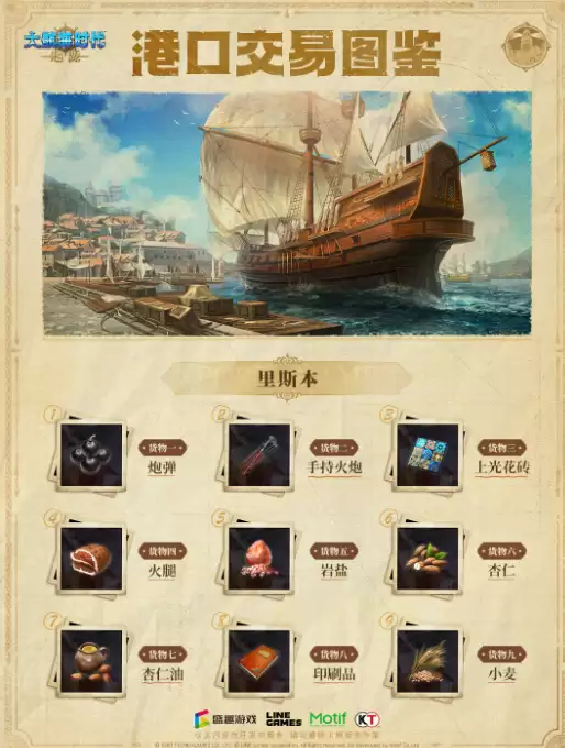 谈到贸易,里斯本的特产配置非常务实。上光花砖、印刷品、杏仁油、火腿,都是初期市场上的硬通货。尤其是上光花砖和印刷品,从里斯本采购后运往塞维利亚或马赛,利润空间相当可观。这条短线航路距离近、风险低,堪称积累第一桶金的完美选择。等资本稍厚,再谋划更远的航线也不迟。