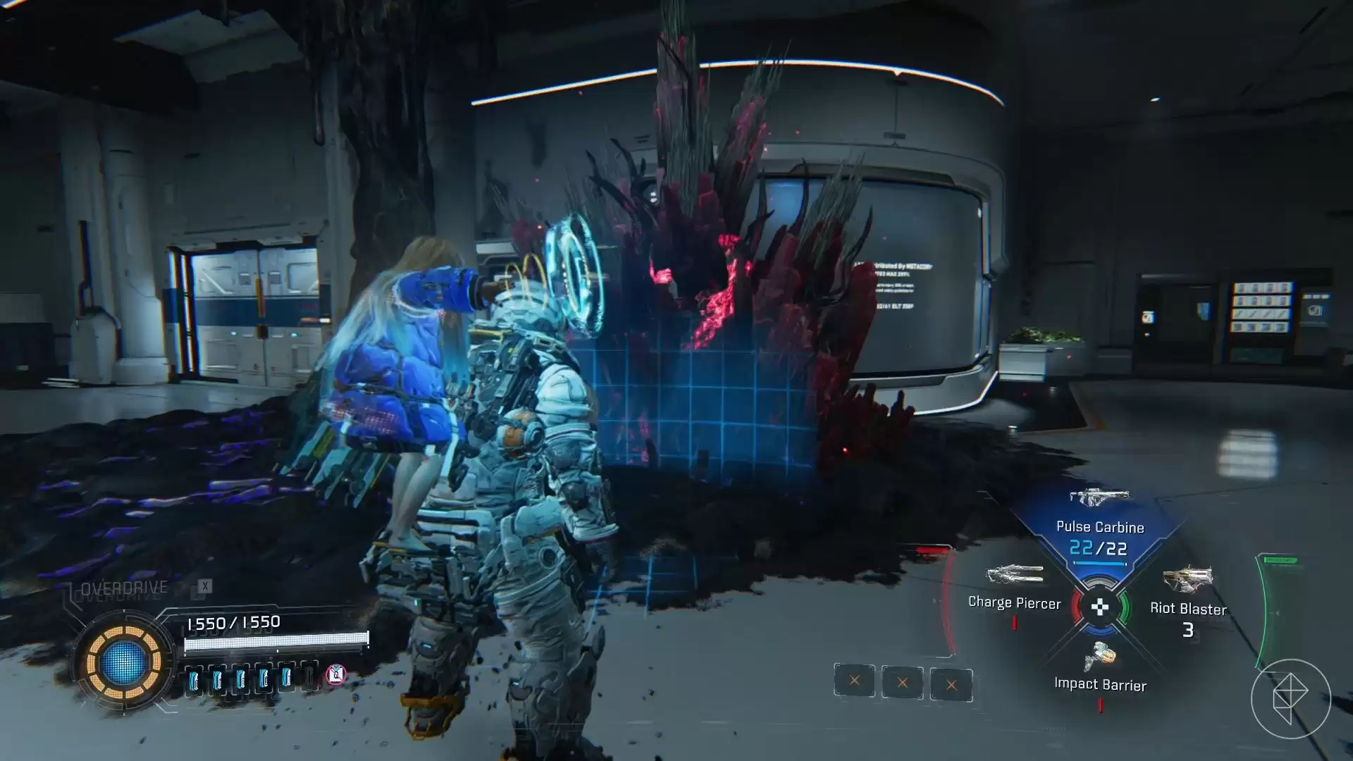 紧接着,一个被“死寂丝状体”覆盖的机器人会破窗而入并攻击你。这个阶段,专注于闪避就好,因为你的子弹对它无效。最终,Diana会被修复,此时你需要使用“军械协议”来击败它。过场动画结束后,你将解锁“删除协议”——这是“军械协议”的升级版。这一次,它不仅威力更强,还能净化死寂丝状体,并将黑客矩阵缩小到最小尺寸。