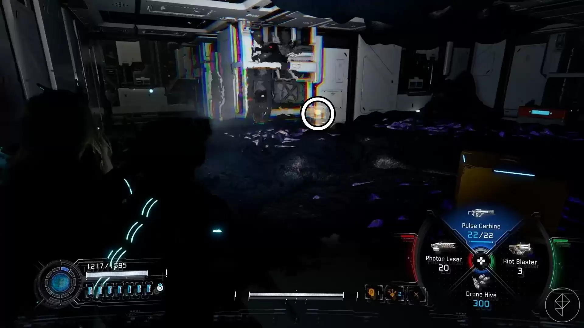 通过货运站的舱门后,需要黑入系统移动平台才能继续前进。穿过该区域后,留意一台打印机单元,组件就在它附近。