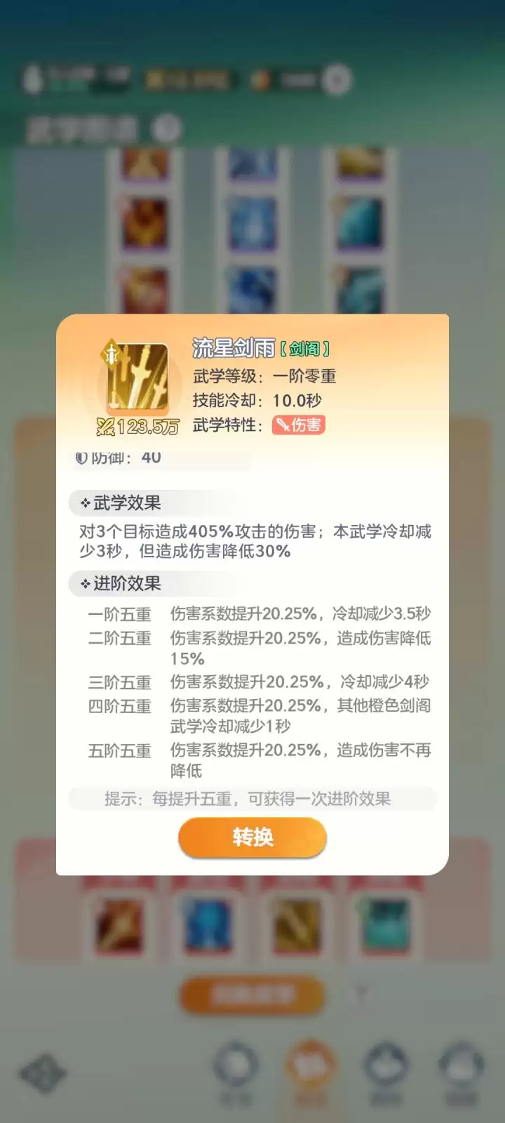 品质第一:不同品质的武学,上阵后提供的属性加成天差地别。比如,红色武学提供的属性可能是橙色的好几倍。所以,在凑不齐理想羁绊的情况下,优先上阵高品质武学。先把红色全装上,位置不够再用橙色补。