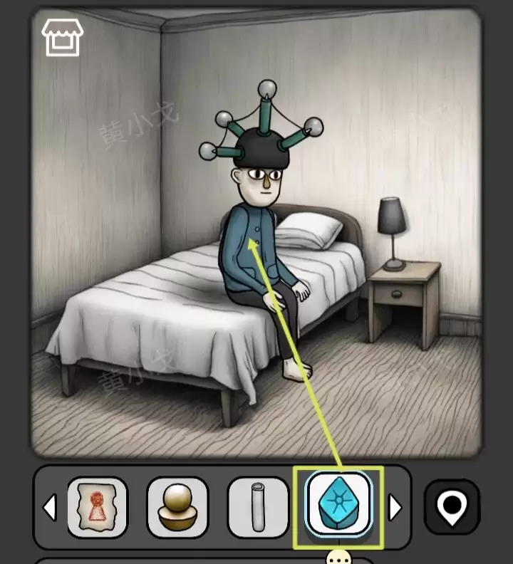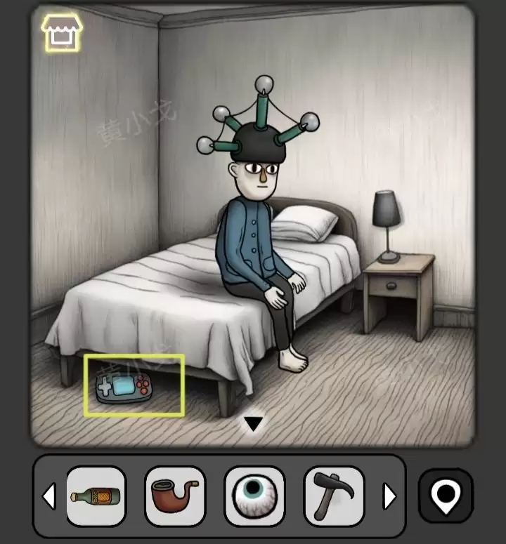 4. 在他身边,捡起地上的【按钮】。