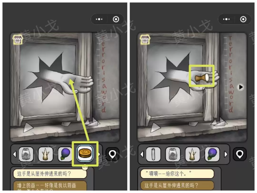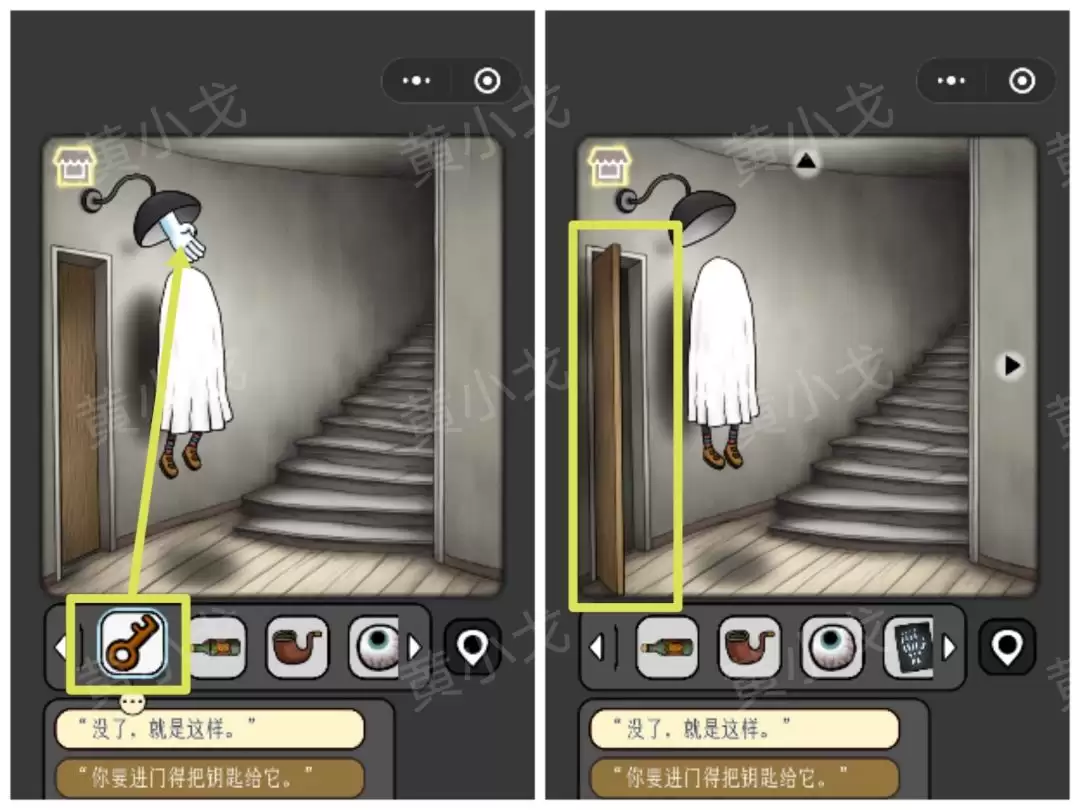 24. 把【钥匙】递给从门里伸出的鬼手,门锁便打开了。
