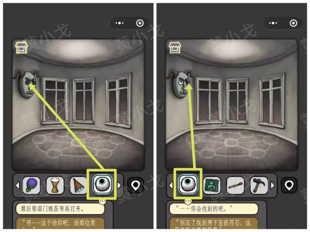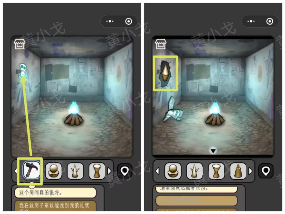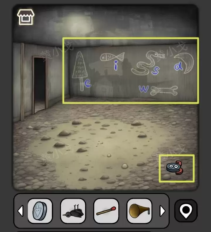 43. 用【锤子】砸开旁边的骷髅墙面,获得又一块【符石】。