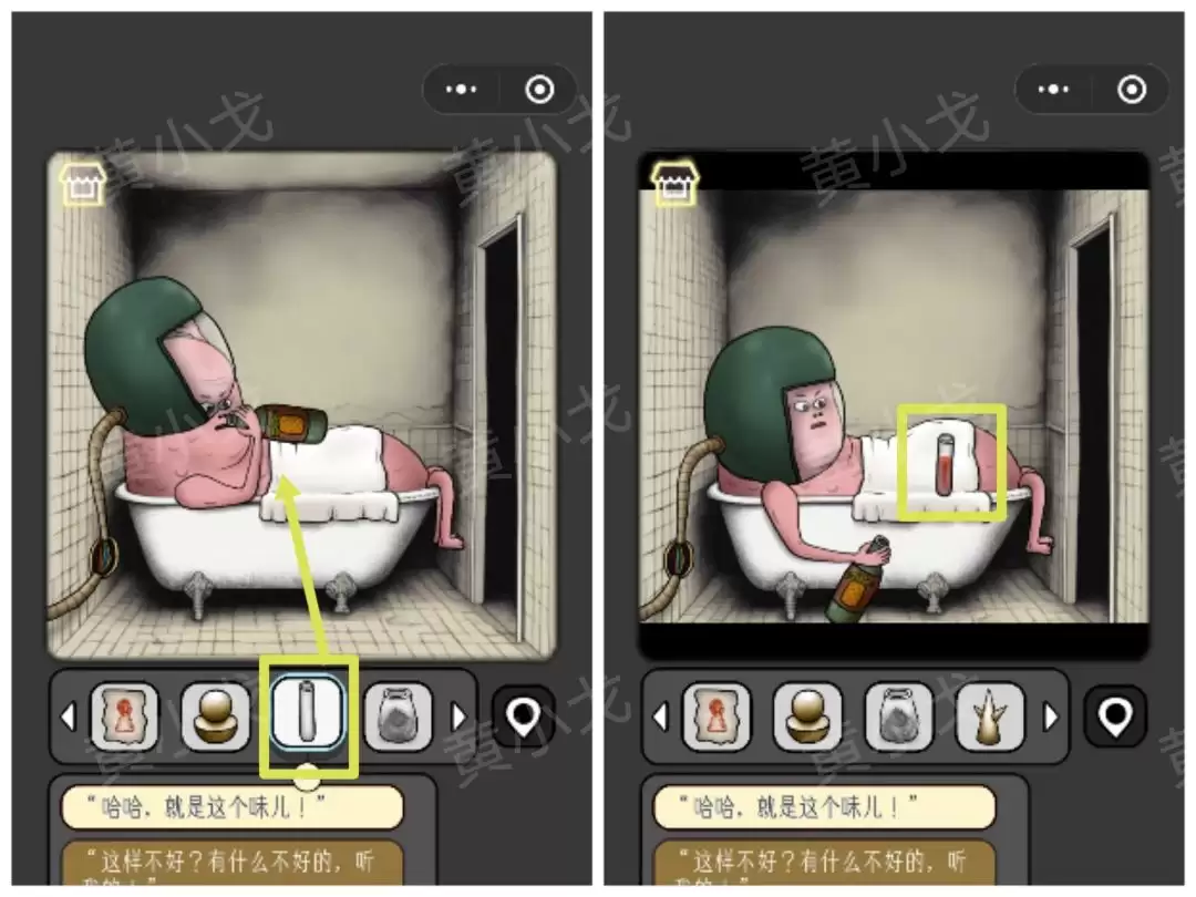 7. 点击柜子上的密码锁,完成一个小游戏。打开柜子,收获【饮料】和另一个【按钮】。