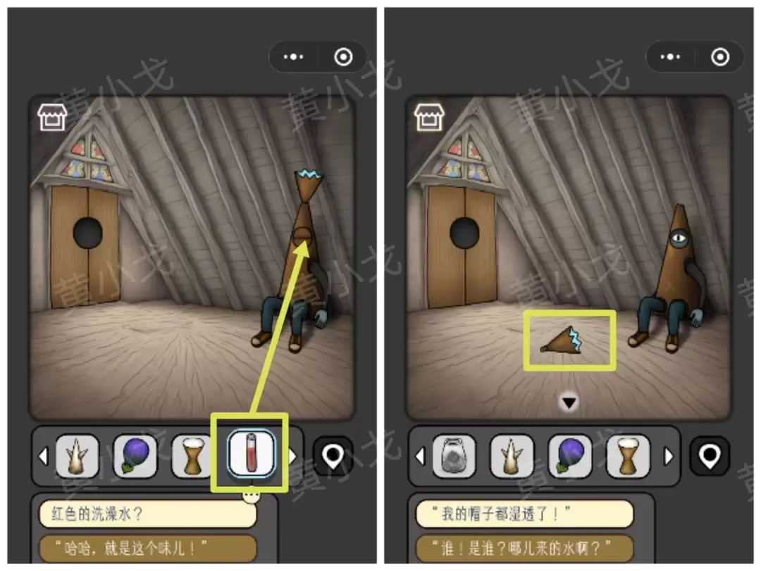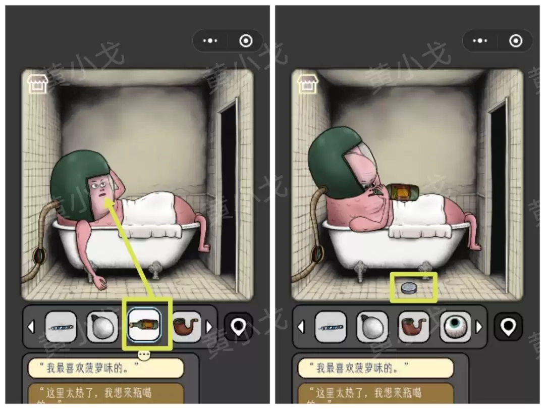 35. 用【剪刀】小心剪下她裙子上的【布块】,剪开后会发现里面藏着一个【瓶子】。
