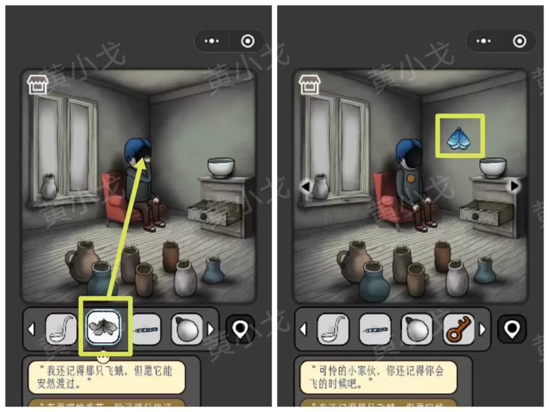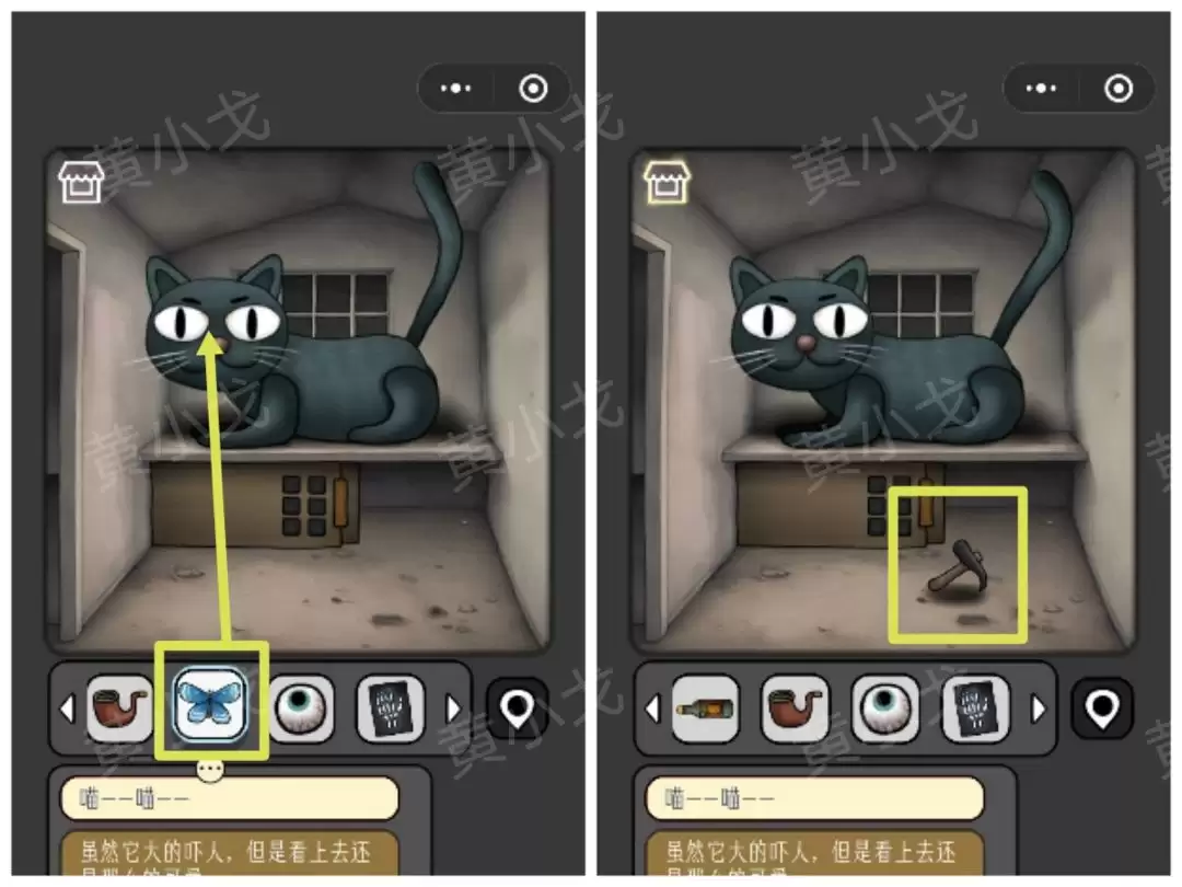18. 把【蓝色飞蛾】喂给猫,它会开心地给你一把【锤子】。