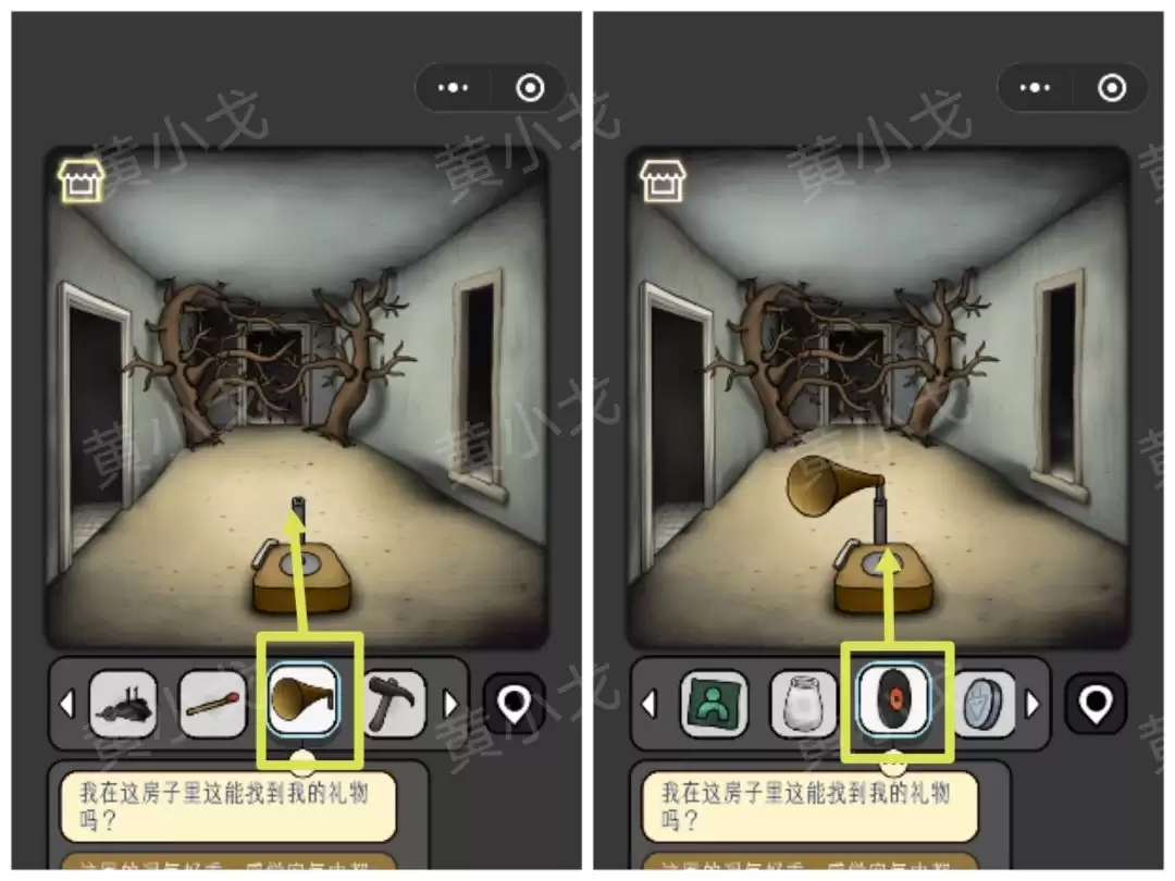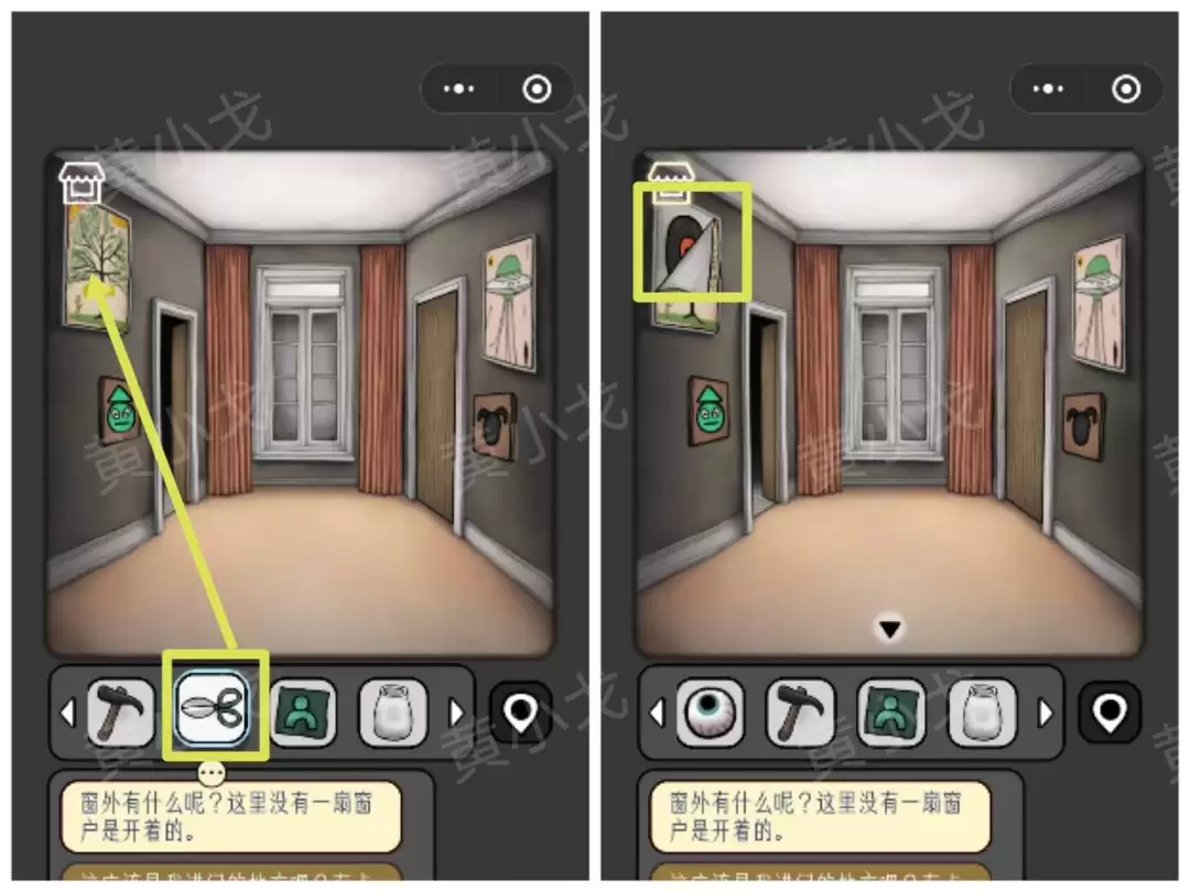 28. 用【剪刀】剪开左侧墙上的画,后面藏着一张【唱片】。
