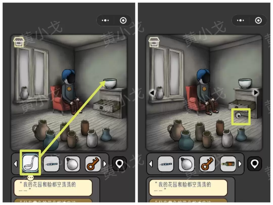 1. 点击她旁边的窗台,顺利拿到第一件道具——一把【勺子】。