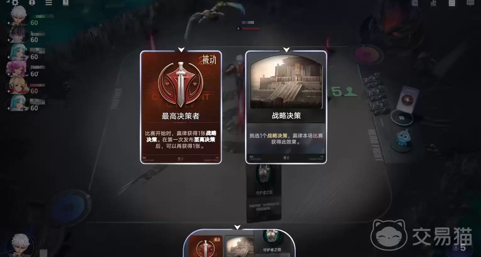 嬴律的专属技能“最高决策者”,从对局一开始就赋予了他制定规则的权力。开局直接获得一张“战略决策”手牌,使用后,可以从几个随机选项中挑选一个执行,而且效果是全程生效的。这些选项往往直击运营要害,比如提升能量获取效率、优化经验转化率,或是直接强化己方英雄战力。
