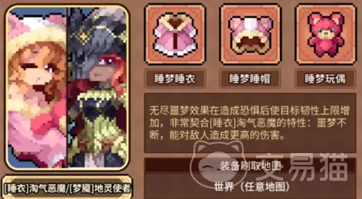 装备搭配是门学问,核心思路是强化“恐惧-弱点”联动。淘气恶魔和地灵使者可以优先共用“睡梦套装”。这套装备的效果非常直接:技能命中后加速敌人弱点暴露,并对已暴露弱点的目标造成额外伤害。这简直是恐惧流“制造弱点-利用弱点”逻辑的完美拼图。