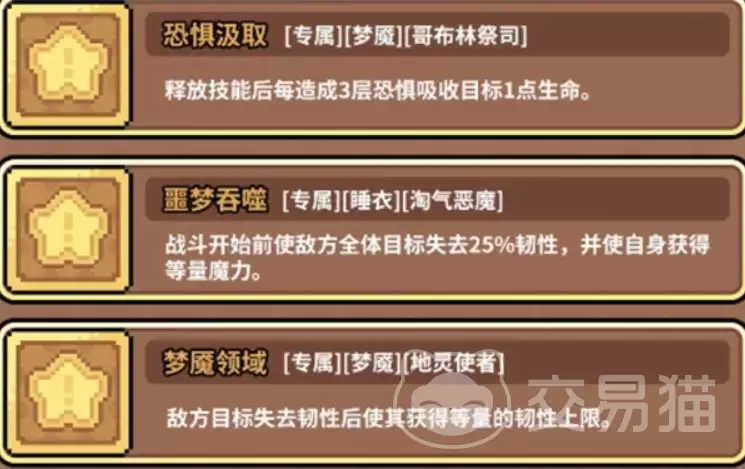 幽暗龙女适配“恐惧汲取”,每累计施加3层恐惧就能吸取敌方生命,显著提升了前排的续航能力,让她站得更稳。淘气恶魔的首选是“噩梦吞噬”,这个天赋非常霸道:开局直接降低全体敌人25%韧性,并在战斗后期将这些削减的韧性转化为等量魔力返还自身,让她的技能循环更加流畅。