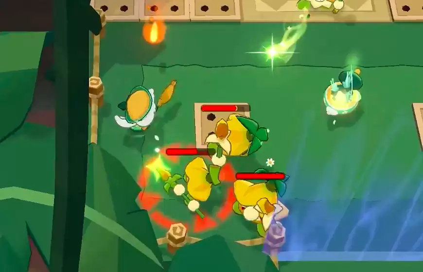 它的技能组设计得非常贴心。基础技能“坚果治疗”堪称救急神器,一旦发现队友生命值低于自身四分之一,便会立刻触发快速回血,确保团队能持续作战。特殊技能“坚果大爆发”则兼顾了防御与战术,释放出的坚果碎不仅能吸引敌方火力,还能为自身叠加防御增益。更妙的是,这个增益效果在玩家切换饼干成员时依然有效,持续时间长达15秒,为战术轮转留足了空间。至于绝招“坚果酱冲击”,效果就更直观了——抛射出粘稠的果酱牵绊敌人,显著降低其移动速度。而且这个果酱是分散抛射的,对付战场上的零星小怪尤其高效,当作清场技能来用再合适不过。
