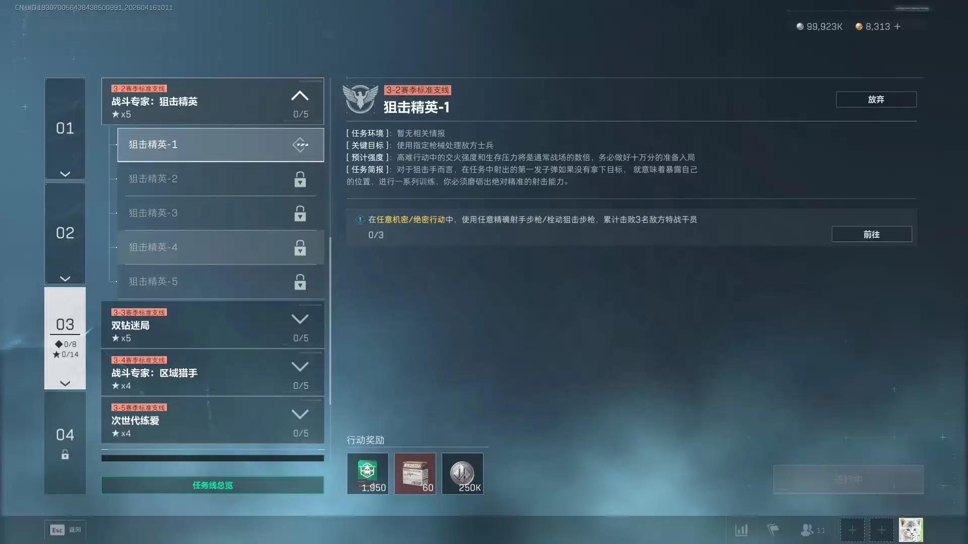 这个任务的核心目标非常明确:在任意一场“机密”或“绝密”级别的行动中,你得用精确射手步枪,累计放倒3名敌方特战干员。