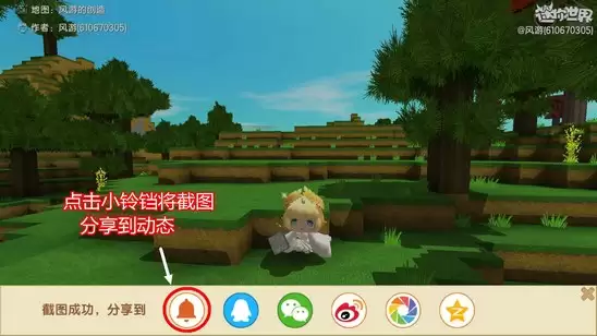 截图搞定之后,接下来就是分享了。注意到屏幕上的小铃铛图标了吗?点击它,选择将刚才的截图分享到你的个人动态里。