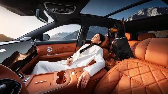 新车提供 5 座与 7 座两种版本,座椅采用 13 层复杂结构,前排座椅支持加热、通风与按摩功能,并提供了带有腿托的“女王副驾”等舒适配置。此外,高品质音响系统、多色氛围灯、健康环保的座舱材料等提升体验的细节,也被纳入了全系产品的考量体系。