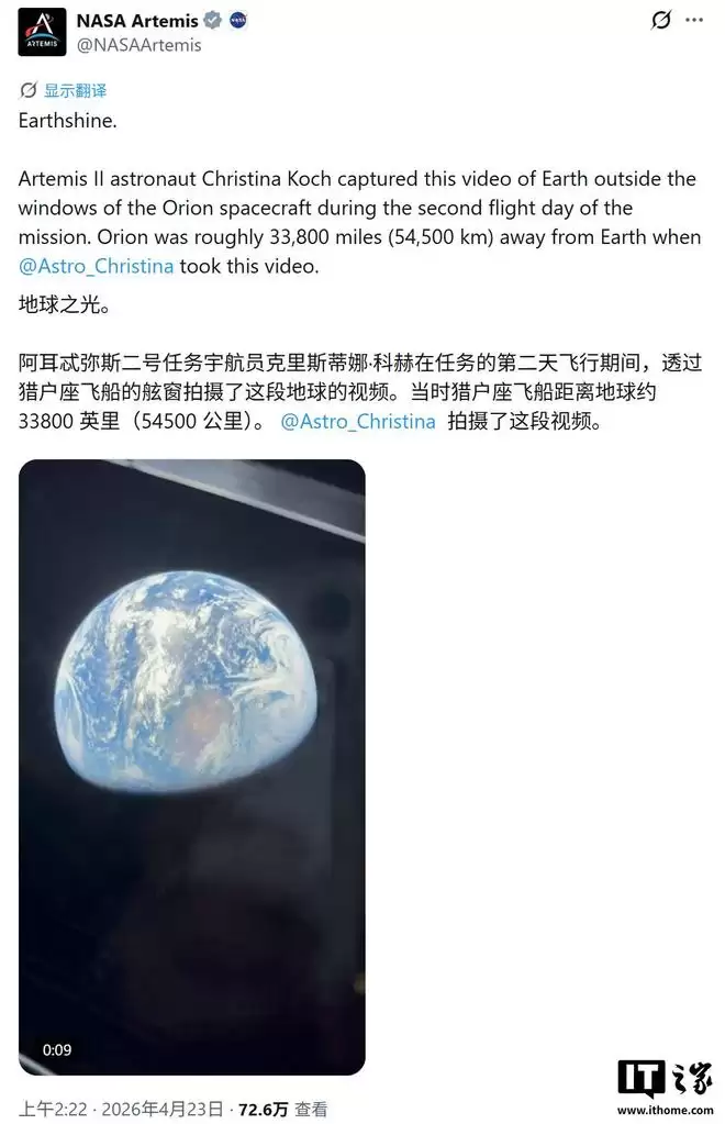 当iPhone镜头对准深空:一段来自猎户座飞船的“地球反光”奇景 太空探索的宏大叙事里,总有一些瞬间能瞬间拉近我们与星辰的距离。就在今天,美国宇航局的阿尔忒弥斯计划官方账号分享了一段特别的视频——它并非由专业太空摄像机拍摄,而是来自一部我们可能再熟悉不过的设备:iPhone。 下面这段影像,就记录了