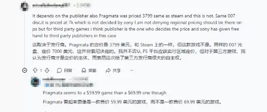 当然,在这场PS游戏定价争议中,也存在不同的声音。有观点指出,PlayStation平台第三方游戏的最终定价权,实际上掌握在游戏发行商手中。本次引发热议的游戏,其发行方Take-Two Interactive旗下公司素来以定价策略强势而闻名。况且,《识质存在》在PS与Steam平台售价保持一致,而像《007:初露锋芒》等作品的高定价,也均是发行商自主决策的结果,索尼并未进行直接干预。因此,将全部责任归咎于平台方,似乎有失偏颇。